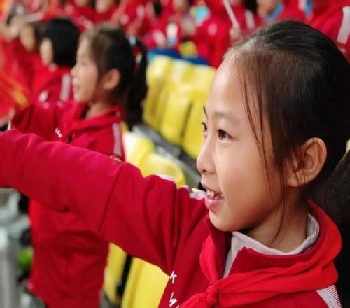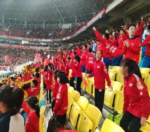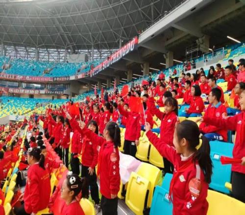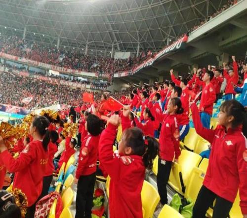 开赛前,当主持人念出球员的名字时,少先队员们瞬间沸腾了。她们舞动着手中的红扇与小红旗,与现场球迷的呐喊声,汇聚成一股充满活力的 “红色力量”。