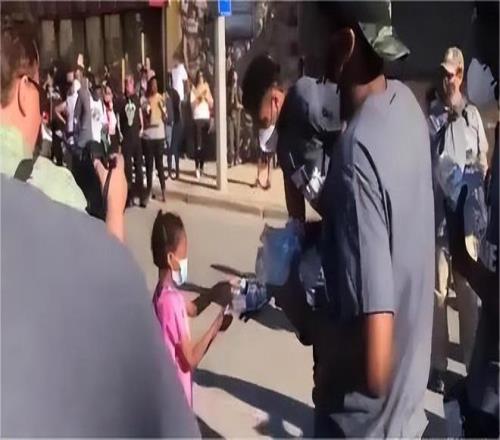 看到小女孩激动落泪后,字母哥也是赶紧去安抚女孩的心情,还与小女孩一起合影留念。